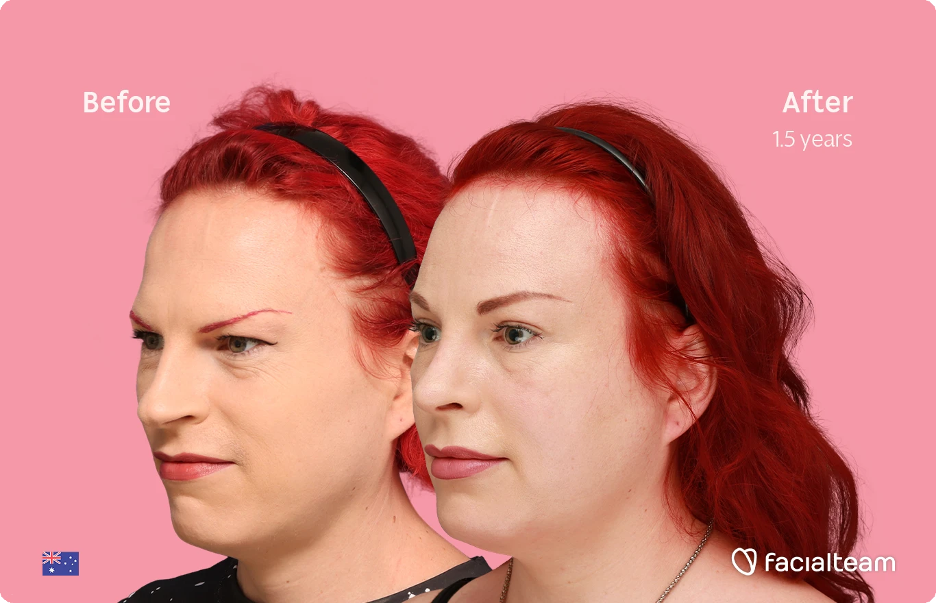 Alexis, a 31-year-old woman from Australia, underwent facial feminization surgery at Facialteam in Marbella, including forehead feminization and rhinoplasty. The before-and-after images, taken one and a half years after her procedure, reveal the long-term results of her transformation. With full healing achieved, her facial features appear naturally refined and well-balanced. Alexis’s case highlights how even a focused combination of procedures can deliver lasting, harmonious, and gender-affirming outcomes over time.